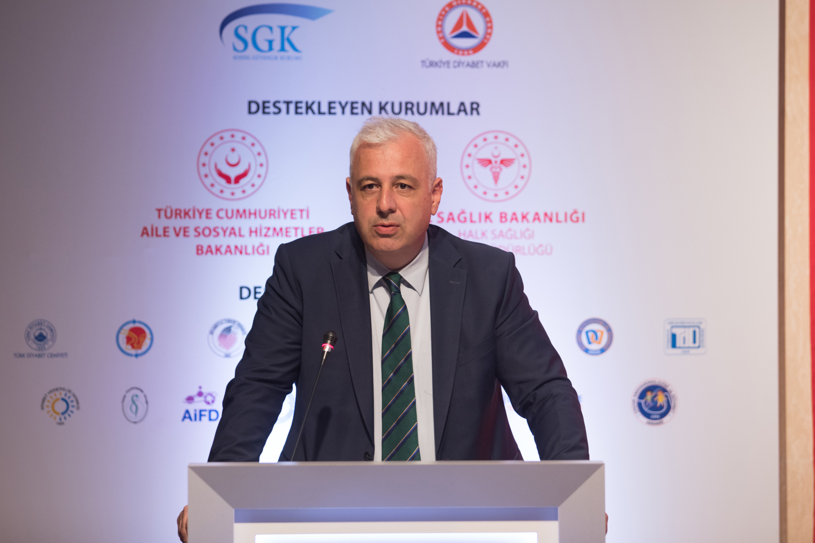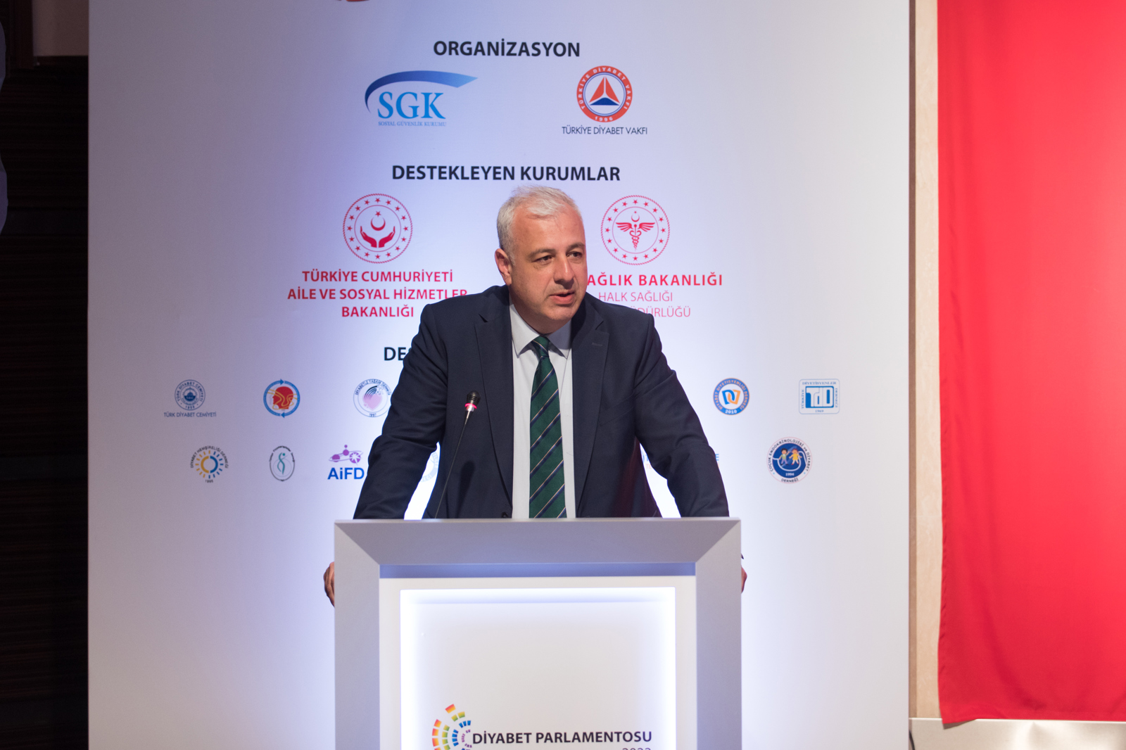 SGK ve Türkiye Diyabet Vakfı iş birliği ile düzenlenen toplantının açılış konuşmasını yapan Sosyal Güvenlik Kurumu Başkanı Kürşad Arat, tüm dünyada olduğu gibi ülkemizde de milyonlarca insanın diyabetle yaşadığını ifade ederek, "Türkiye’de sağlık sistemi ve hizmetleri konusunda dünyada örneğine az rastlanan ve diğer ülkelere ilham veren bir genel sağlık sigortası sistemimiz bulunmaktadır. Birçok gelişmiş ülkede dahi olmayan sağlık alanındaki teminat paketi genel sağlık sigortalılarımıza sunulmaktadır. Sosyal güvenlik sisteminde yapılan değişikliklerle nüfusun neredeyse tamamını kapsayan bir sağlık sigortası sistemi kurulmuştur. Bu kapsamda Sosyal Güvenlik Kurumu olarak vatandaşlara sunulan sağlık paketi, kapsayıcılığının yanı sıra zengin içeriğiyle de ön plana çıkmaktadır" dedi.